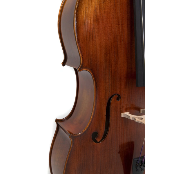 Die antikisierte Lackierung im braun-bernsteinfarbenen Naturharzlack verleiht dem Cello nicht nur eine klassische Optik, sondern unterstützt auch die klangliche Entfaltung. Jedes Instrument hat durch die Handlackierung einen leicht individuellen Charakter.